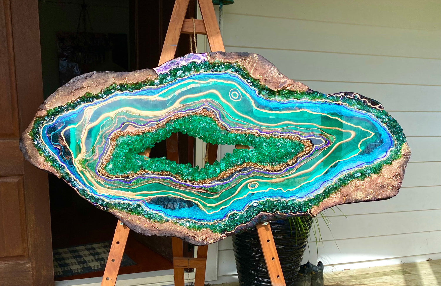 Using genuine crystals, gemstones and 24K gold, hand collected shells and stones to embellish her artworks, Leda uses her materials to create thought provoking artworks that will take your breath away.