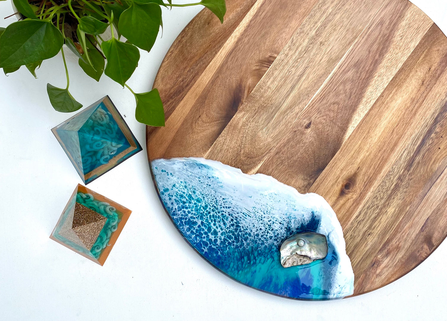 ~ Her homewares collection contains many locally handmade pieces that use recycled native wood. All of her homewares are named after different beaches and mountains in NZ. No two are the same.