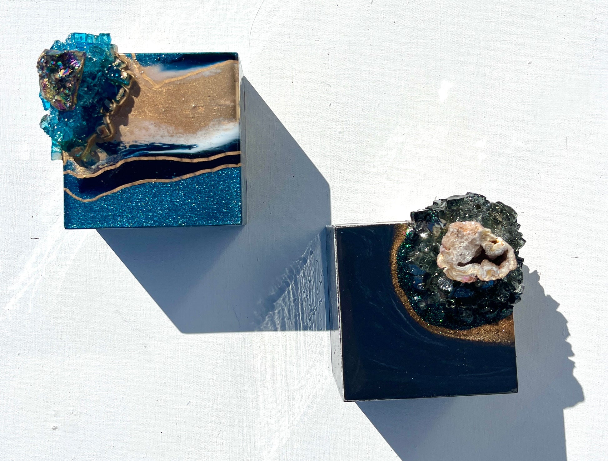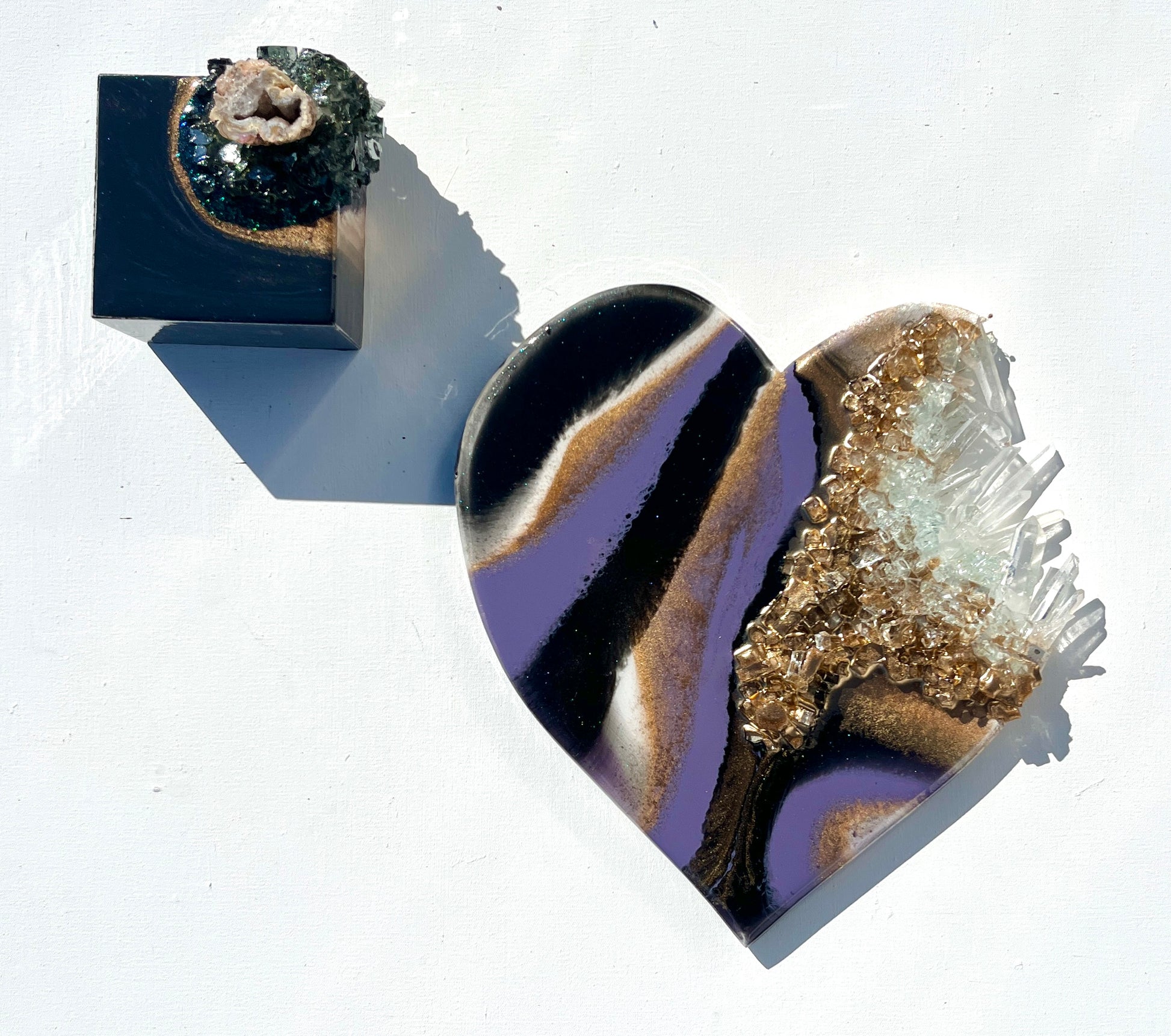 Using genuine crystals, gemstones and 24K gold, hand collected shells and stones to embellish her artworks, Leda uses her materials to create thought provoking artworks that will take your breath away.