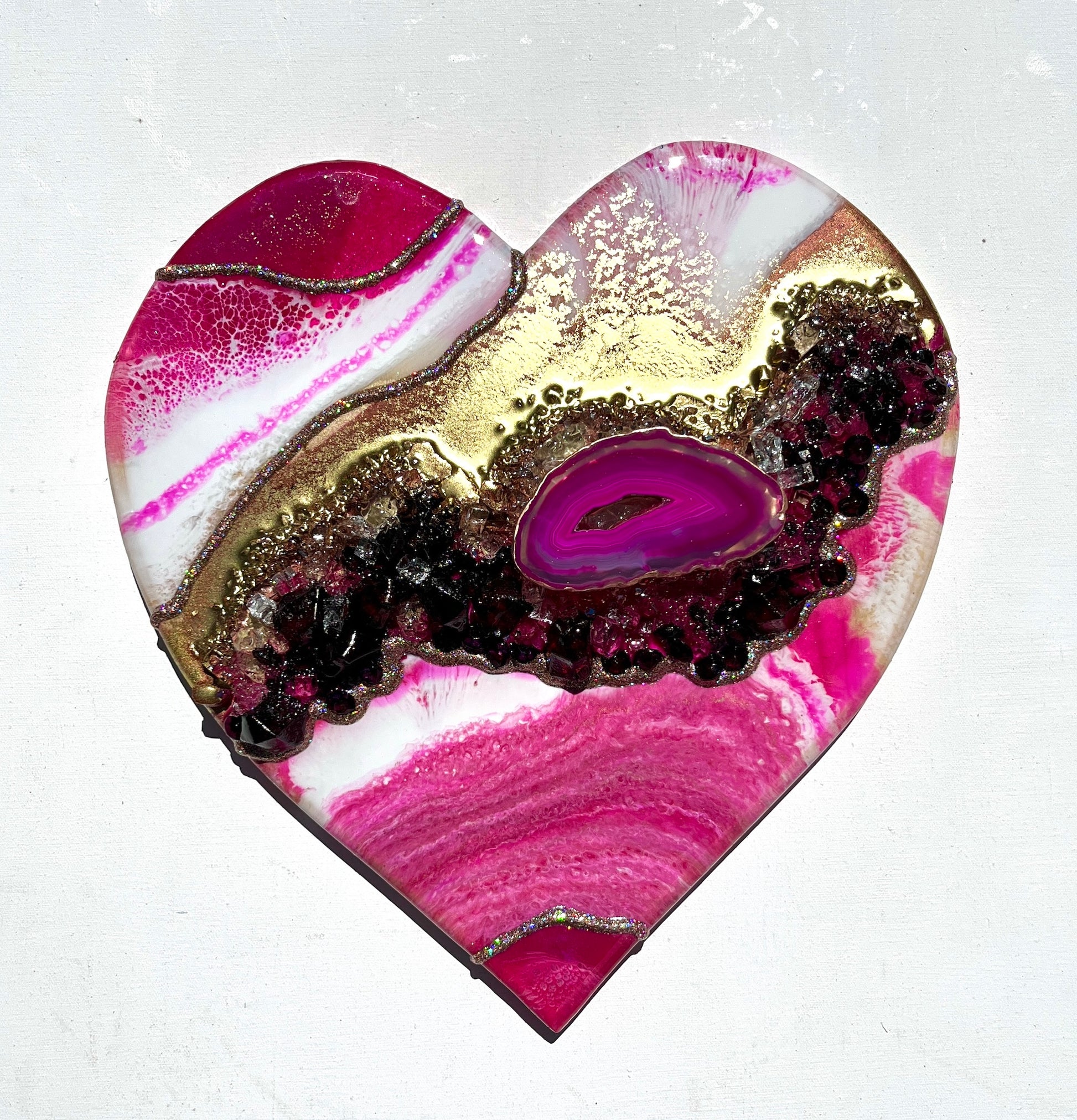 Using genuine crystals, gemstones and 24K gold, hand collected shells and stones to embellish her artworks, Leda uses her materials to create thought provoking artworks that will take your breath away.