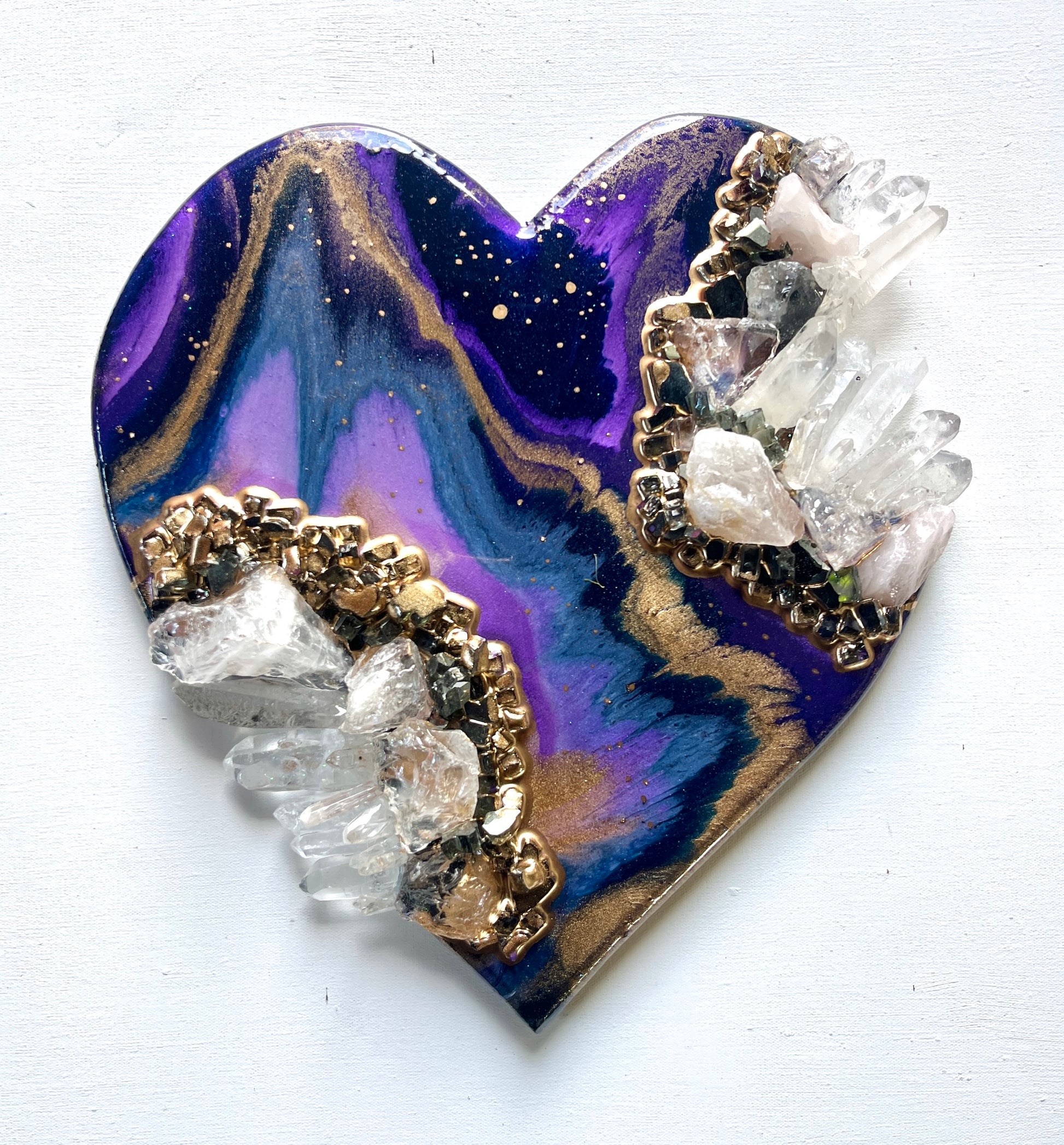 Using genuine crystals, gemstones and 24K gold, hand collected shells and stones to embellish her artworks, Leda uses her materials to create thought provoking artworks that will take your breath away.
