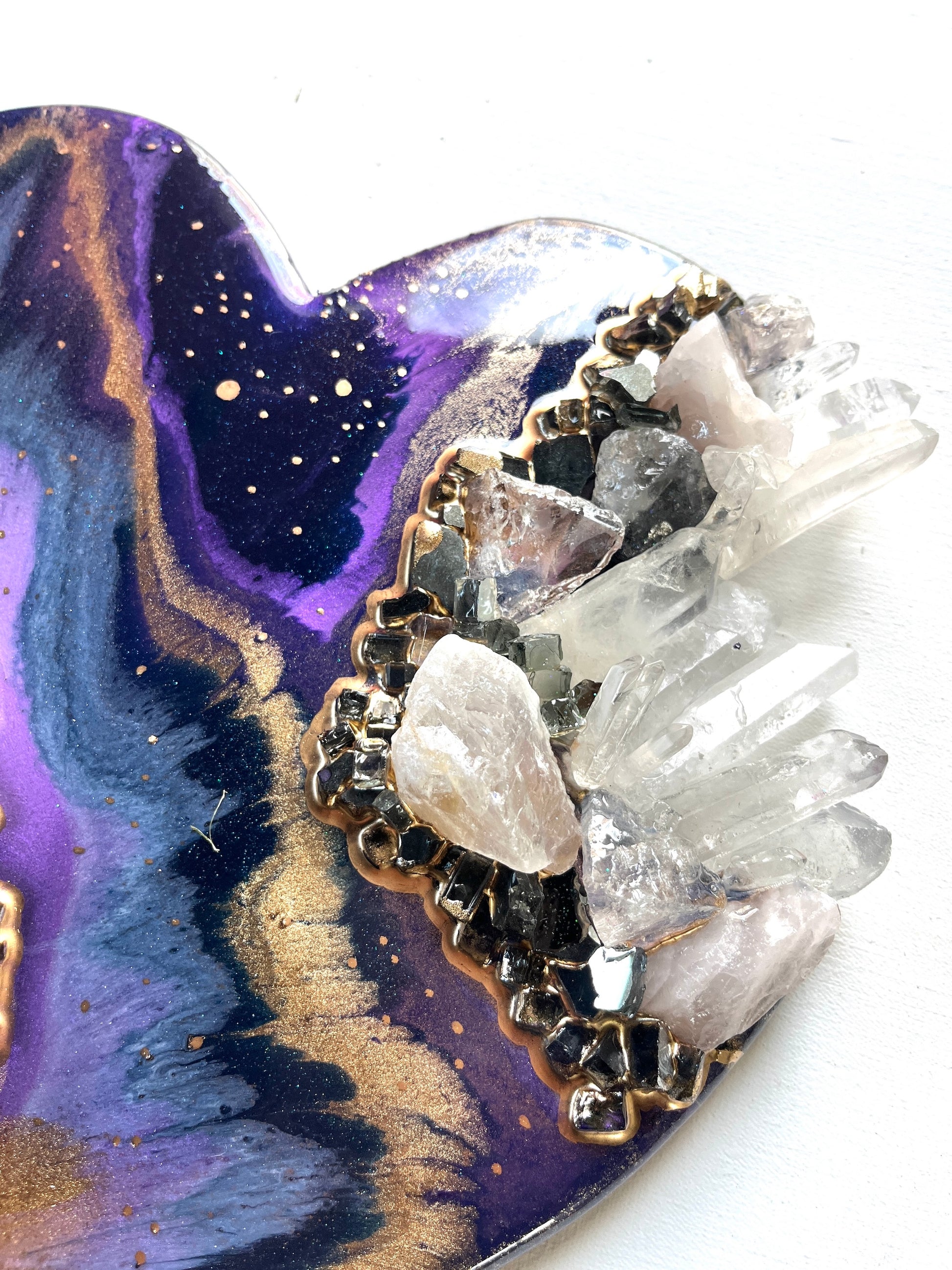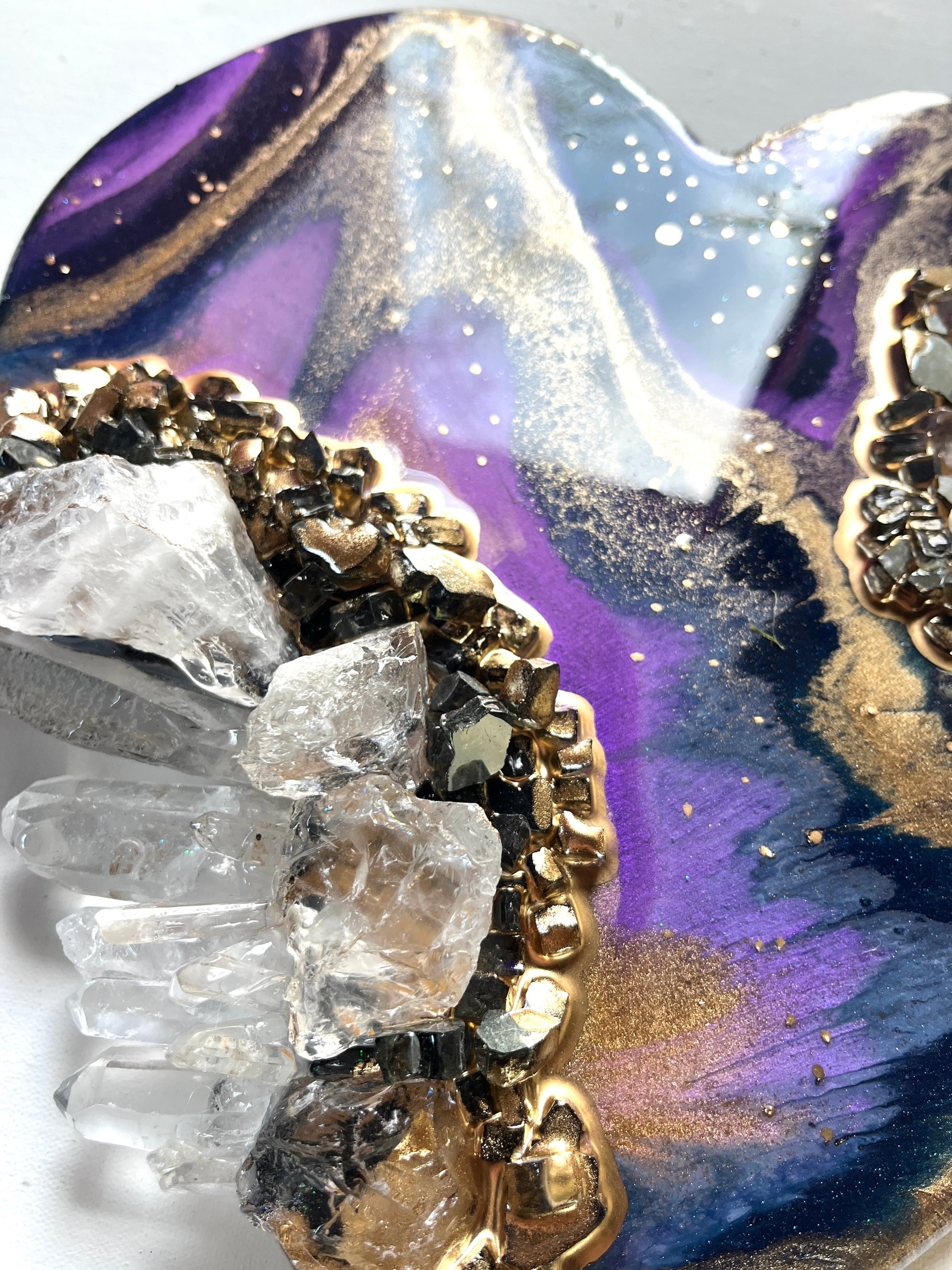 Meaning a profound period of transformation and inner change, Chrysalis is charged with the beautiful energy of genuine crystal quartz points and painted like a night sky with shining stars.