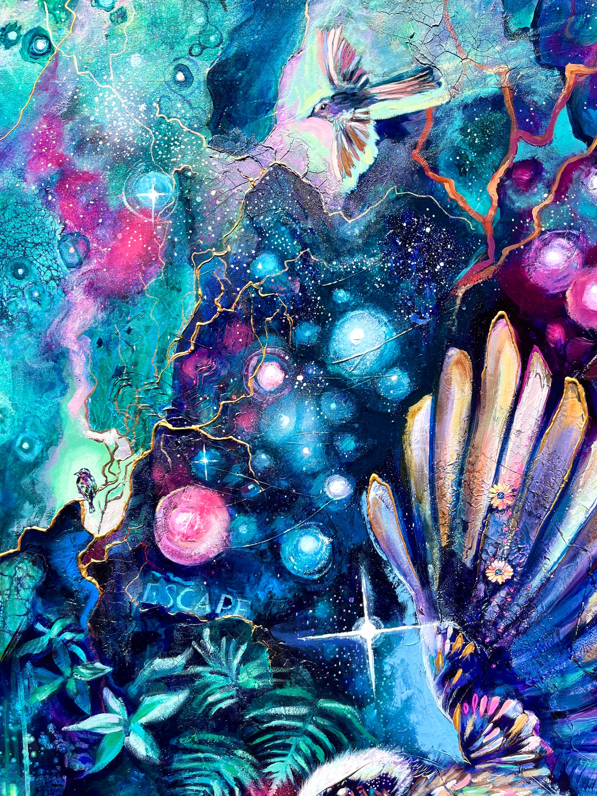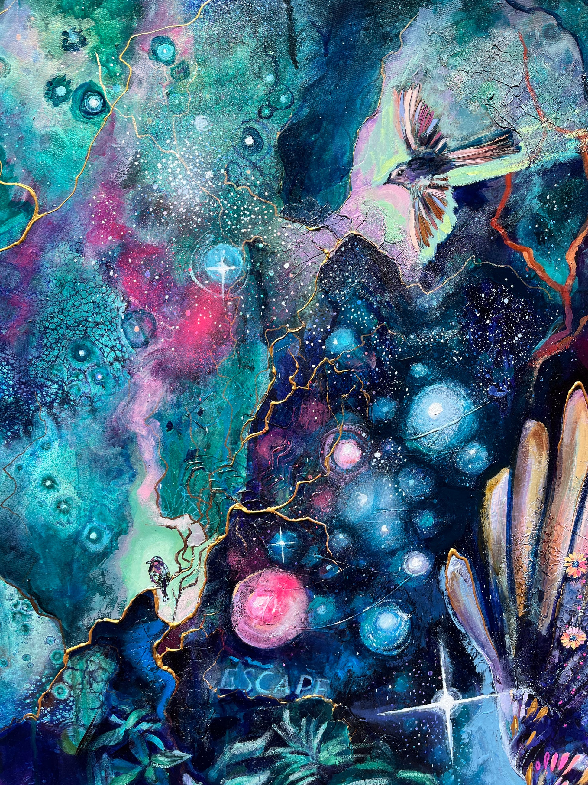 Using genuine crystals, gemstones and 24K gold, hand collected shells and stones to embellish her artworks, Leda uses her materials to create thought provoking artworks that will take your breath away.