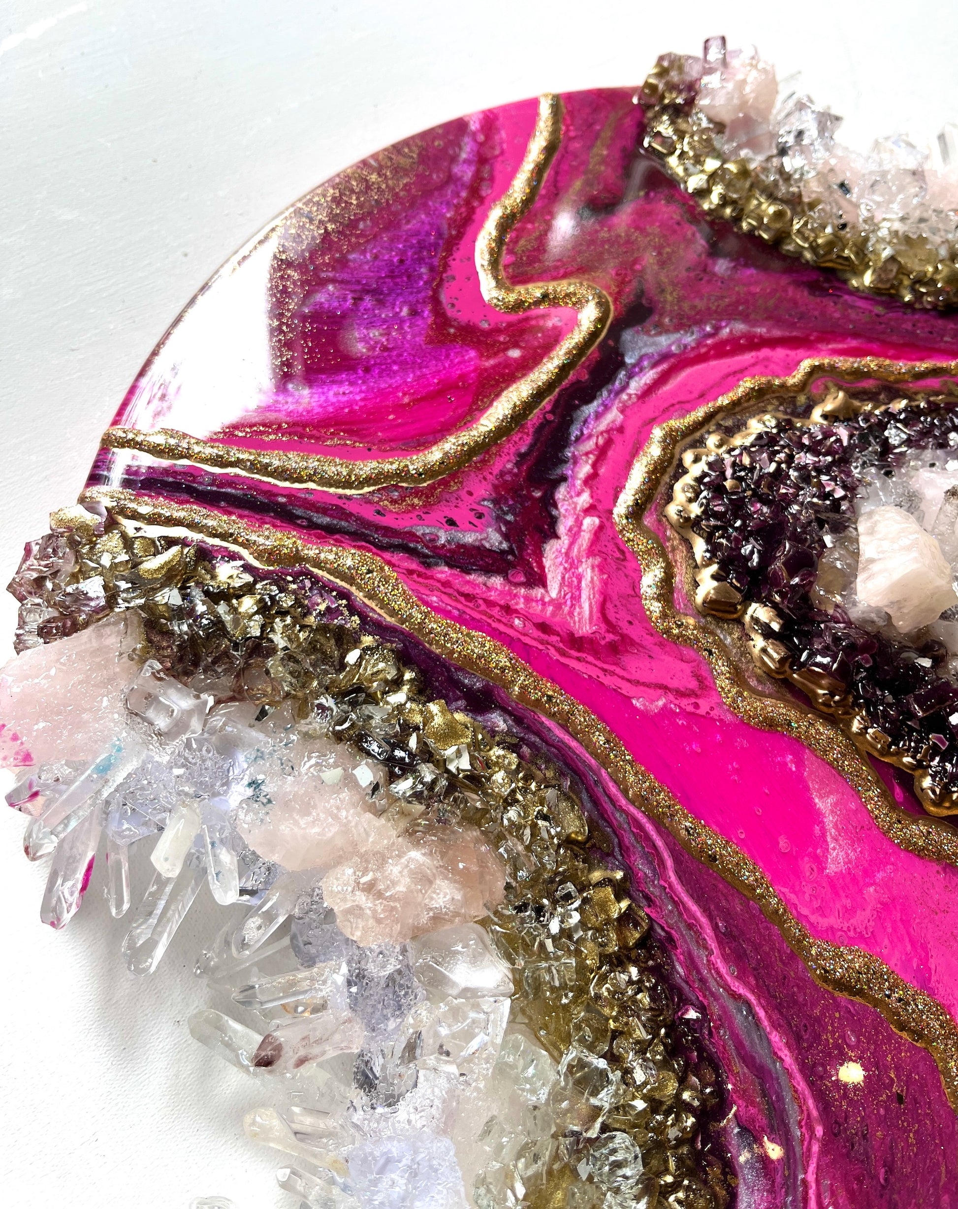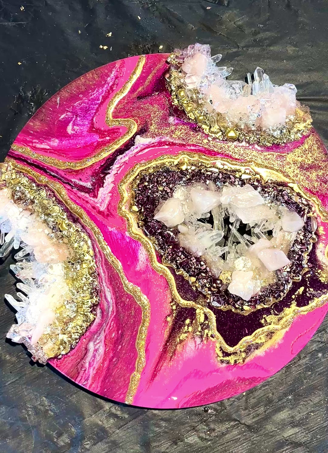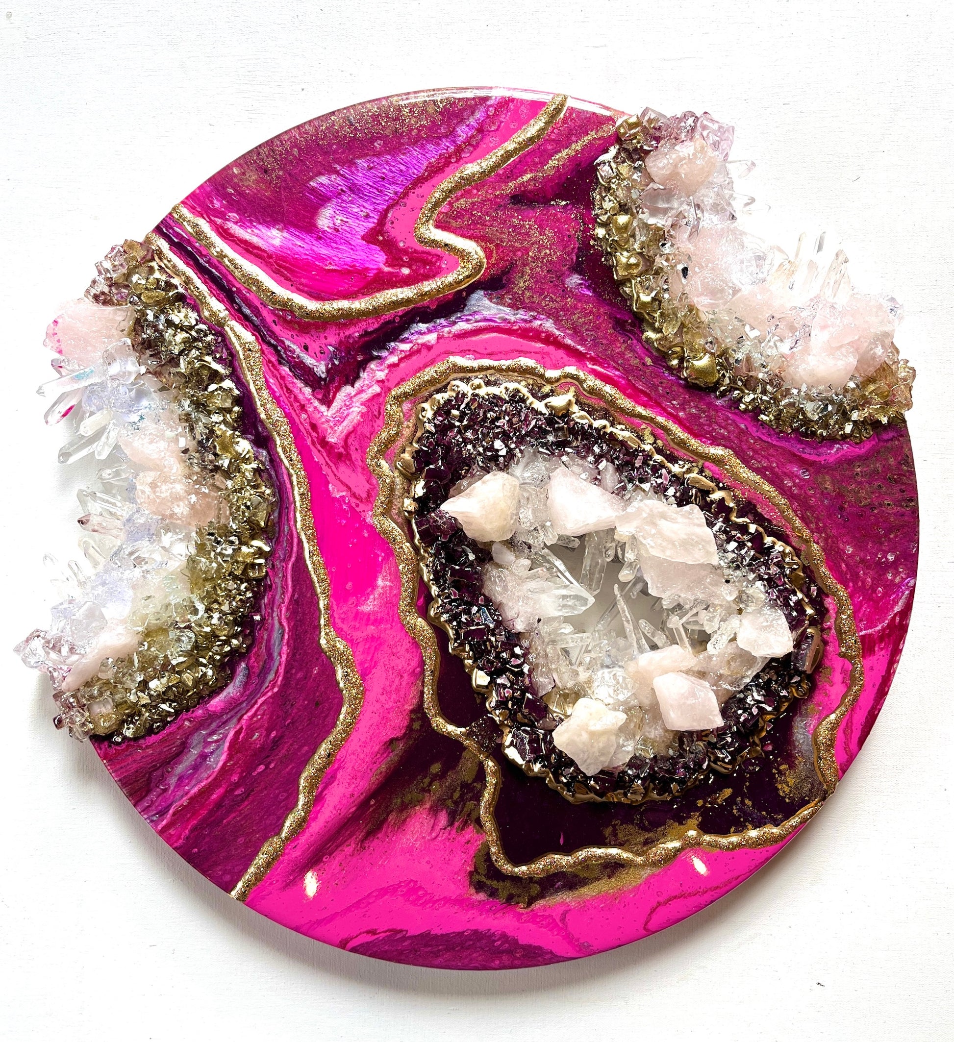 Using genuine crystals, gemstones and 24K gold, hand collected shells and stones to embellish her artworks, Leda uses her materials to create thought provoking artworks that will take your breath away.