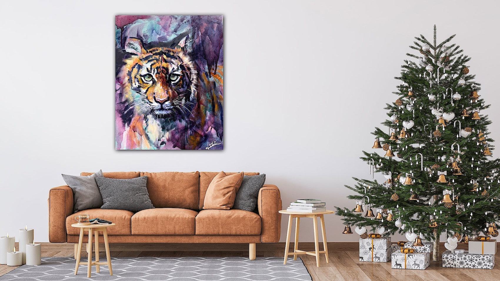 If you desire a unique and captivating piece of art that showcases the unbridled beauty and majesty of nature, look no further than this magnificent tiger painting. Custom size options are also available to meet your specific requirements, so please do not hesitate to contact us today to learn more.