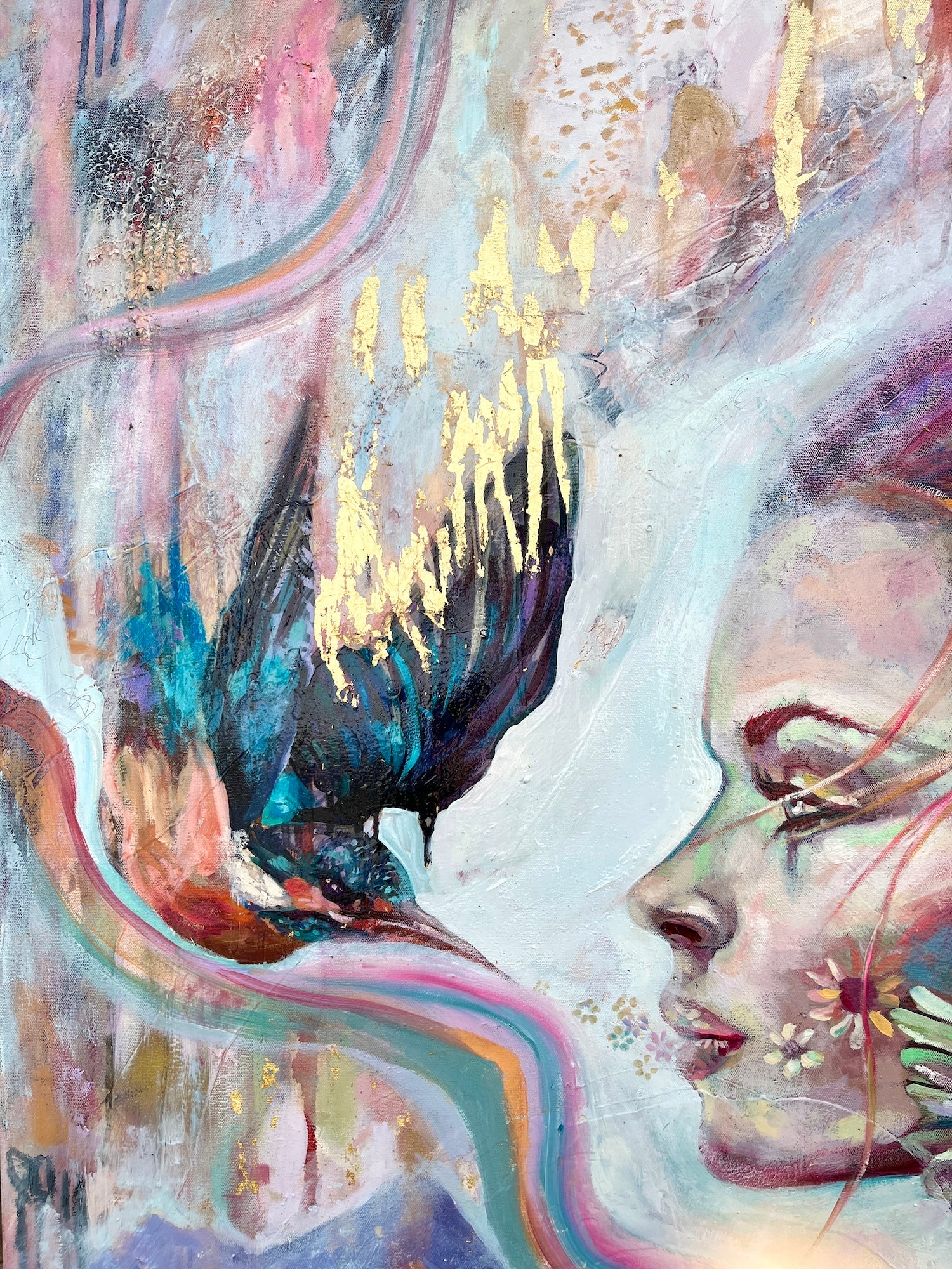 Kotare's Kiss invites you to a world of ethereal beauty, captured in strokes of pastel mauves, pinks, blues and neutral hues.