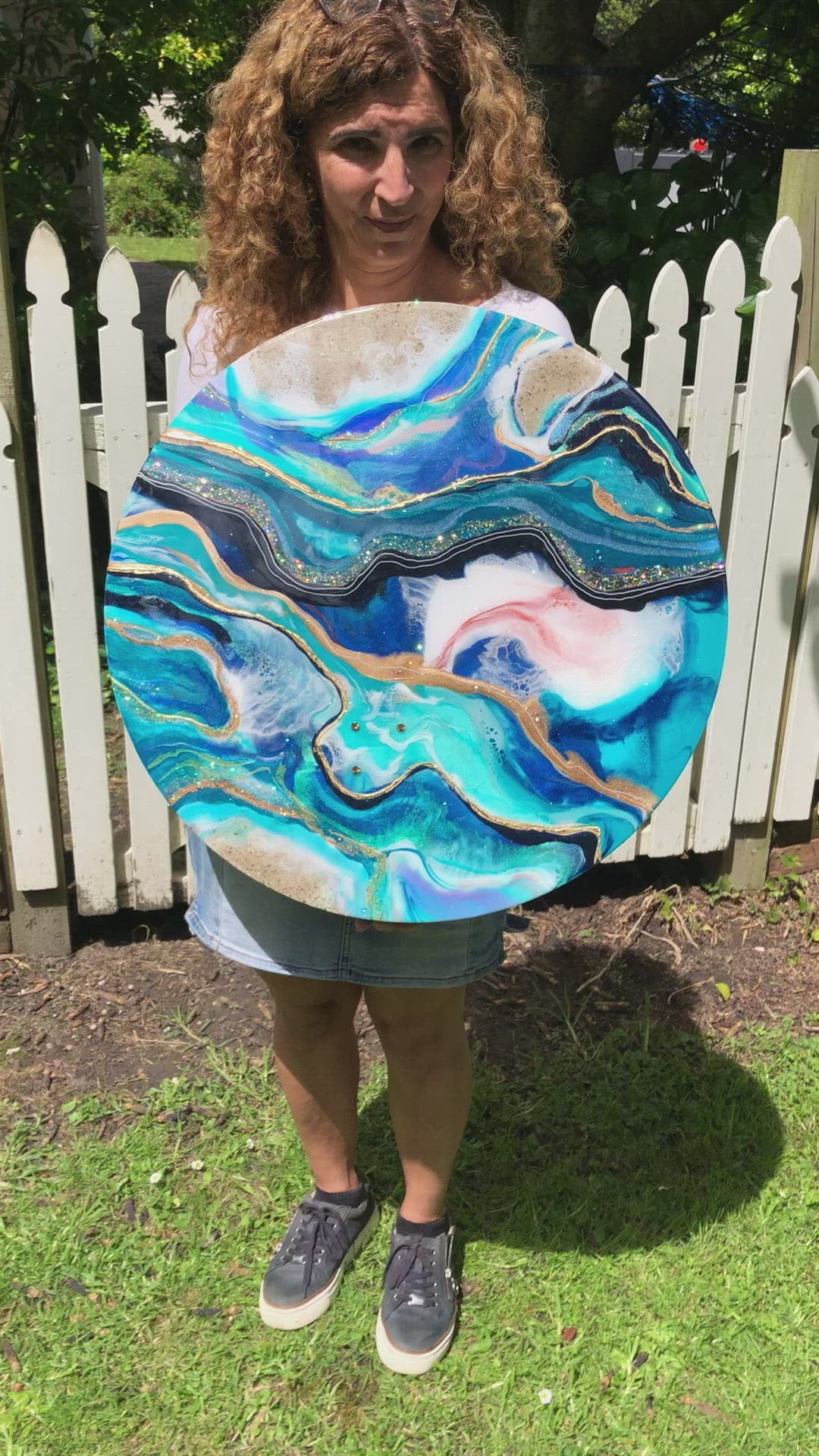 New Zealand ocean inspired artwork with gold leaf and Swarovski crystals.
