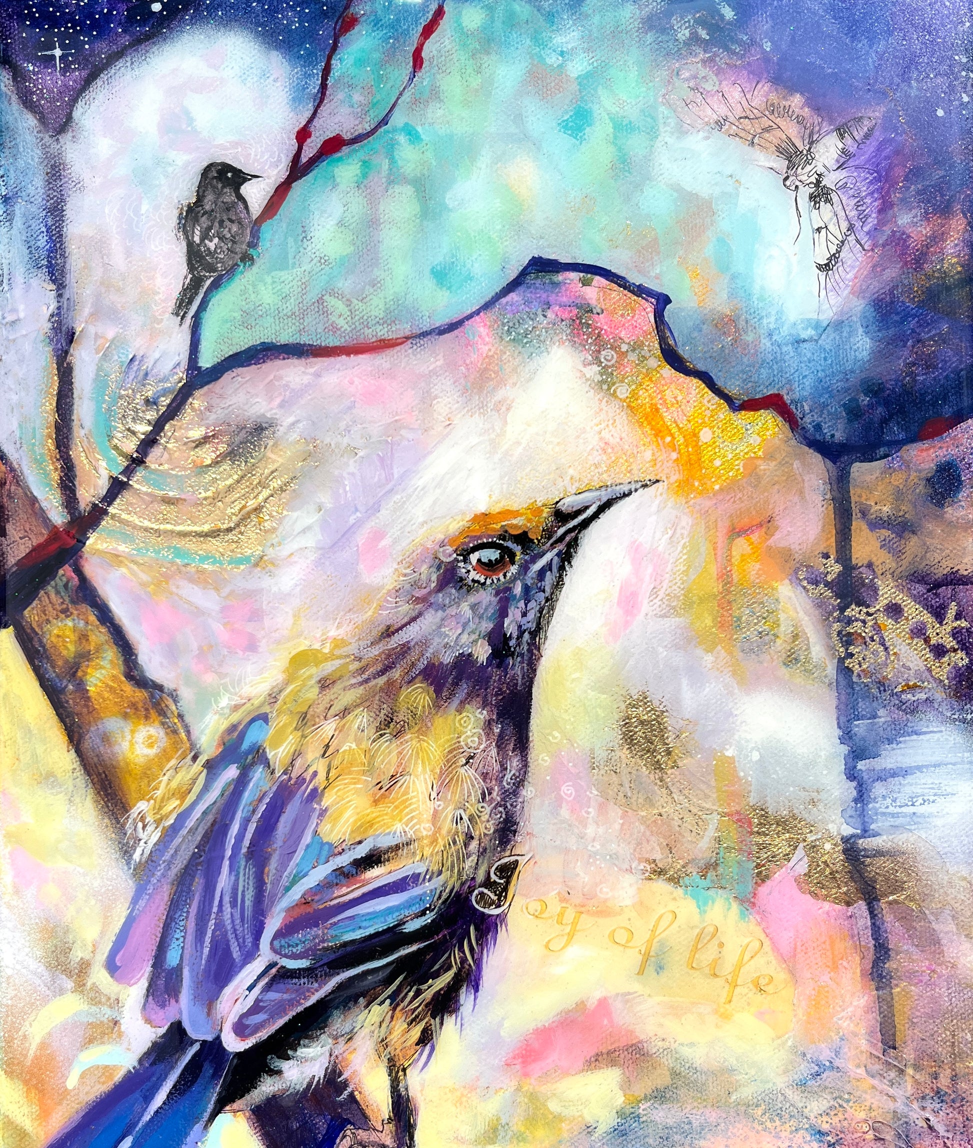 Using genuine crystals, gemstones and 24K gold, hand collected shells and stones to embellish her artworks, Leda uses her materials to create thought provoking artworks that will take your breath away.