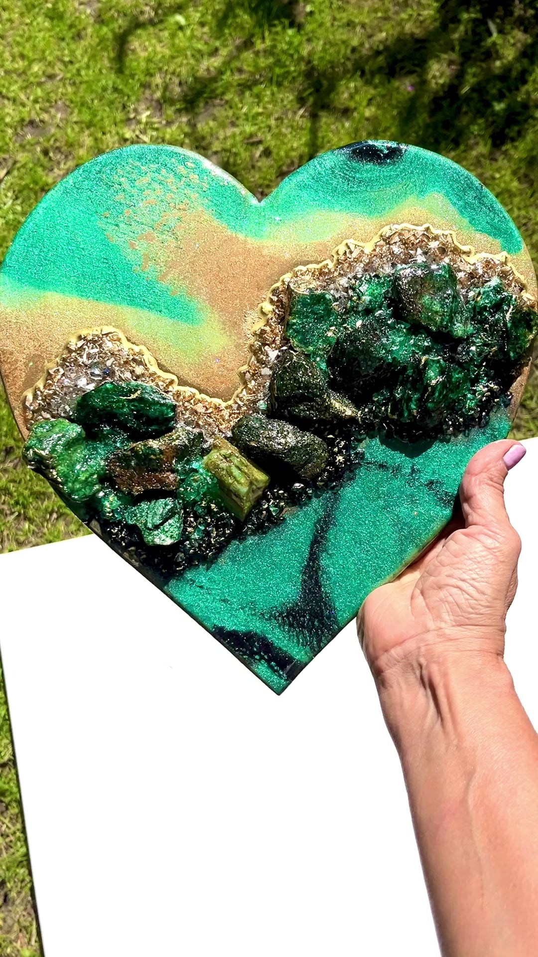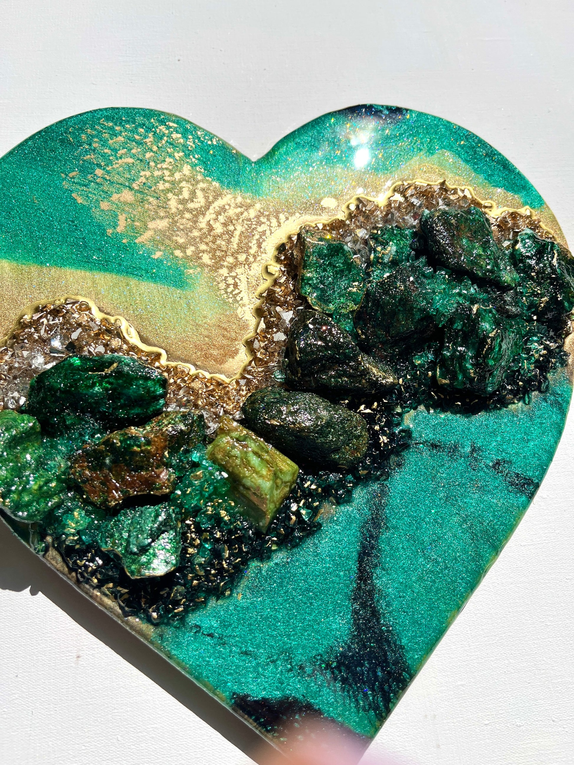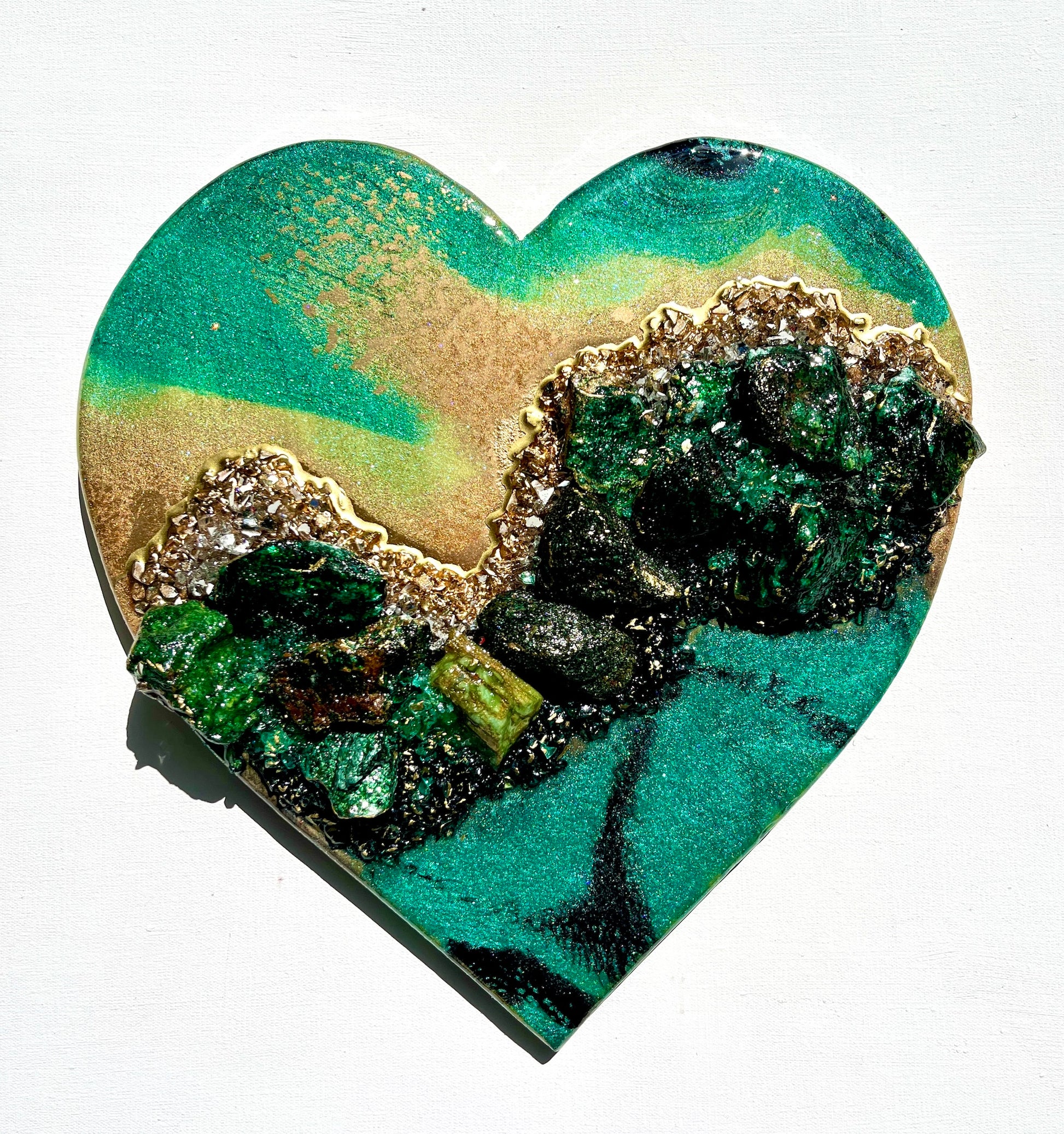 This beautiful custom made heart features a river of green aventurine stones. This stone is known as the 'Stone of opportunity', believed to attract luck and prosperity.