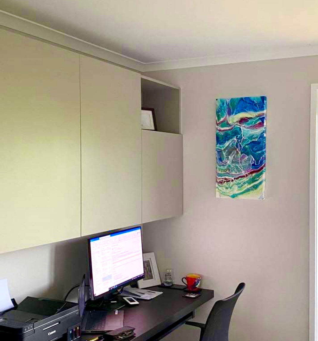 The client wanted a colourful artwork for her home office that was painted in neutral colours.