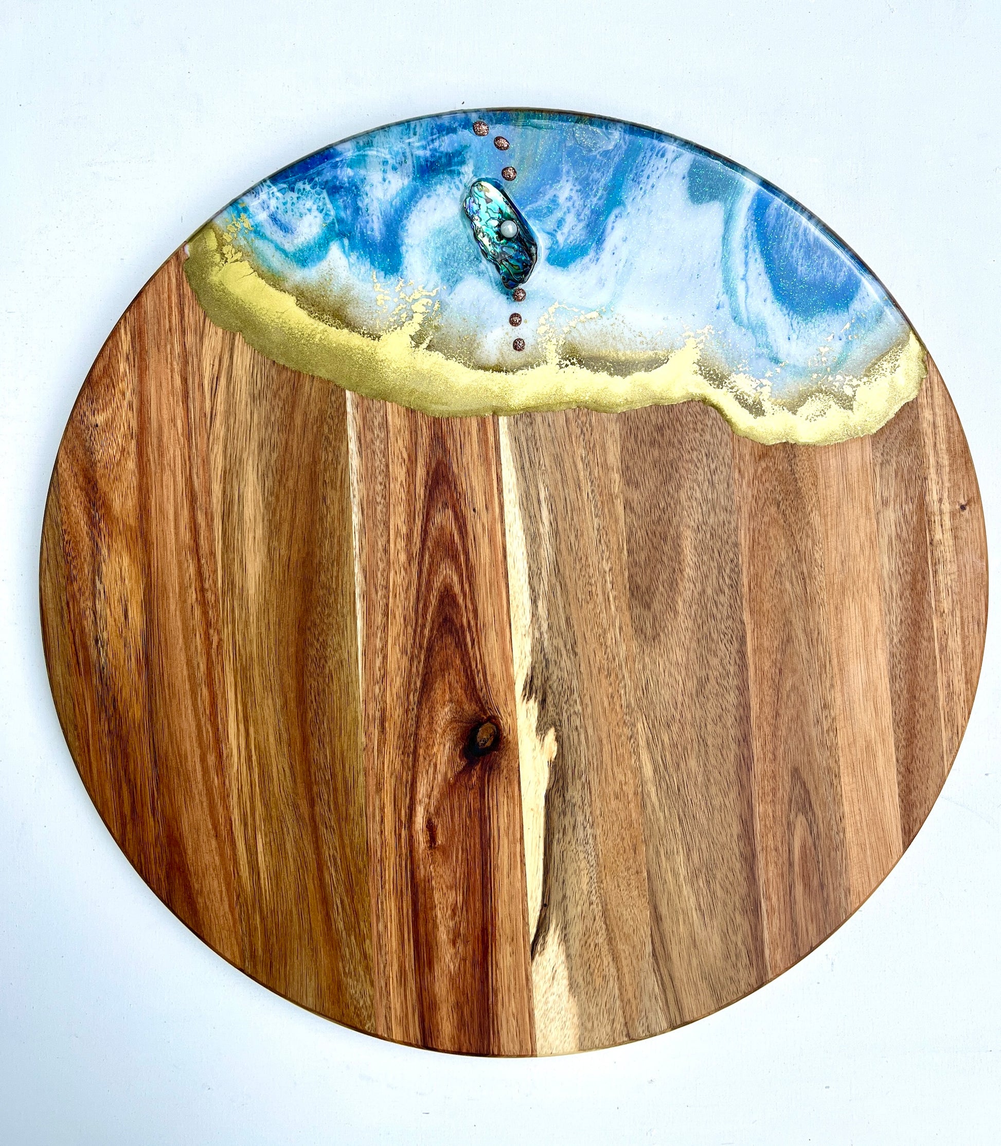 Perfect for the summer table, this lazy Susan is inspired by the ocean and features a paua shell and pearl detail.