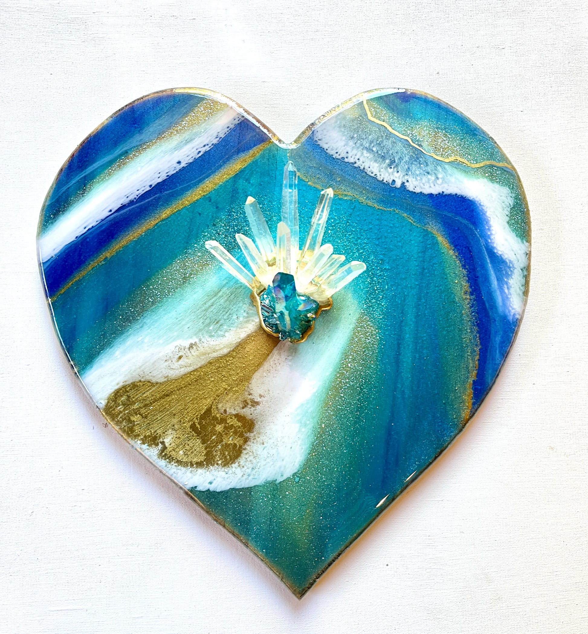Using genuine crystals, gemstones and 24K gold, hand collected shells and stones to embellish her artworks, Leda uses her materials to create thought provoking artworks that will take your breath away.