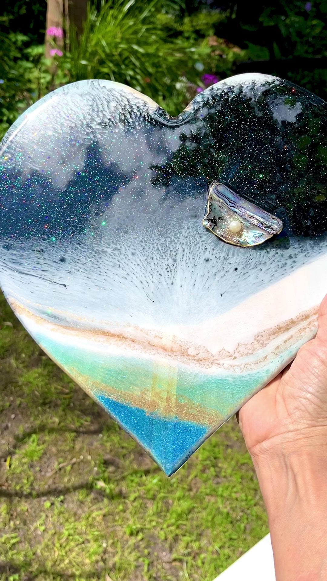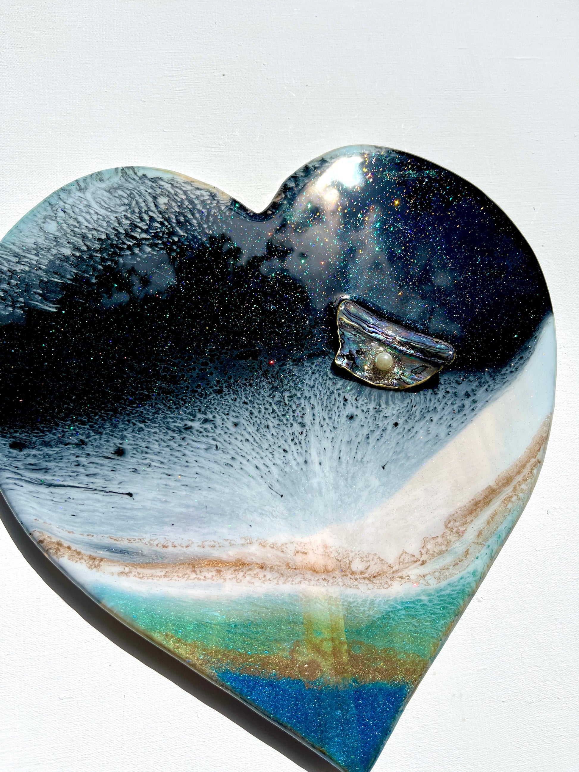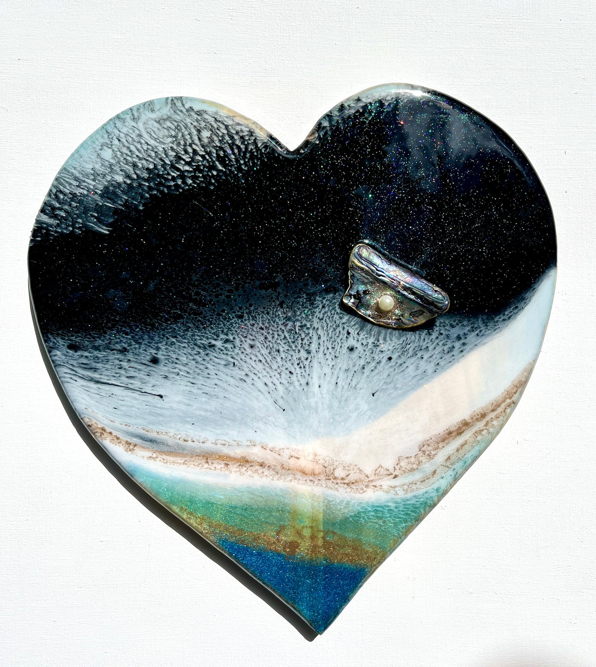 Gorgeous love heart inspired by the Pacific Ocean, with paua shell and pearl detail.